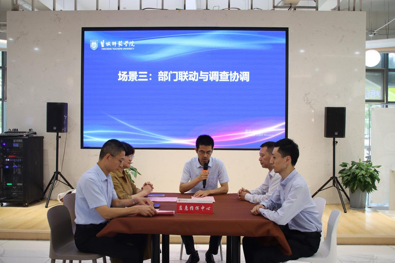 徐华副校长随即指示成立食物中毒应急处置指挥中心,启动盐城师范学院食物中毒事故应急处置预案。各部门闻令而动,医护人员立即赶赴现场进行流调处理,相关学生按照要求紧急送往医院救治;保卫处迅速设立警戒区,维持现场秩序;涉事窗口被紧急封锁并同步向上级主管部门和市场监督部门报告;市场监管和疾控部门迅速抵校,对食堂操作间、仓库、留样柜以及宿舍现场进行勘查,采集呕吐物、食品留样等标本;宣传部做好舆情应对,统一有效回应社会关切;学工部门联系二级学院,协同做好学生家长以及学生的安抚工作。整个流程响应迅速、处置规范,展现了高效的协同、协调的作战能力。