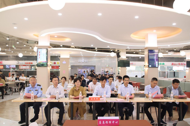 本次演练由盐城师范学院与盐城经济开发区综合执法局联合举办。副校长徐华,校党委宣传部、团委、学生工作处、保卫处、后勤保障集团等领导出席演练活动,盐城经济开发区综合执法局等相关指导单位、后勤各科室代表、后勤各食堂负责人、学生代表共80余人到场观摩学习。