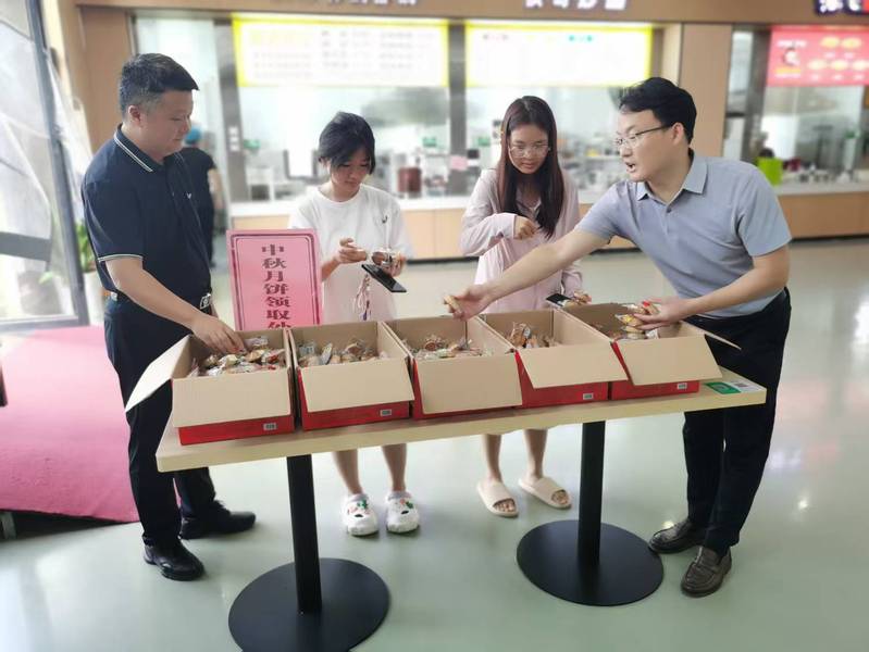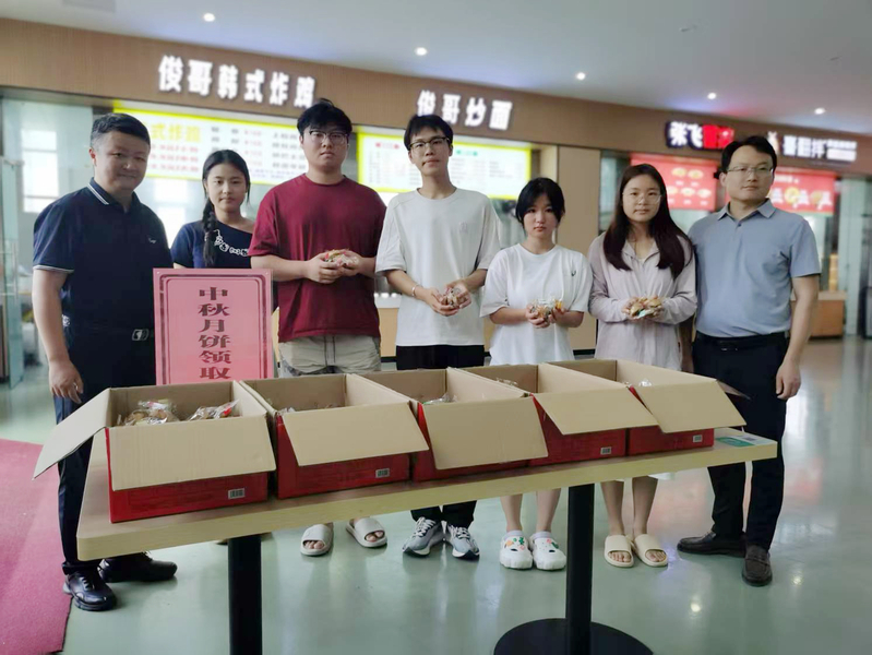 活动当天,两个校区食堂里洋溢着节日的喜庆气氛,食堂入口处,各种口味的独立包装月饼整齐摆放,食堂窗口前,色香味俱全的各式菜肴一字排开。前来就餐的同学都会收到食堂递上的一份月饼礼和一声“同学,中秋节快乐!”。这份突如其来的惊喜,让很多学生眼前一亮,纷纷在社交平台上分享这份来自学校的关怀。