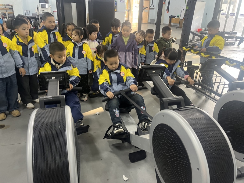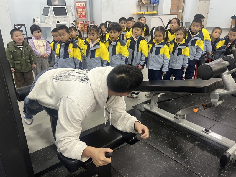 到达体院一楼,孩子们就被宽敞明亮的场地、整齐排列的健身器材吸引。在大学生哥哥的介绍和演示下,孩子们们认识了许多运动器材以及它们的使用方法,还迫不及待地体验了一回健身的乐趣。