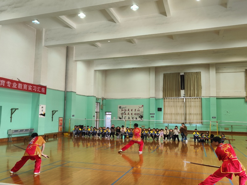 最后孩子们还观看了体院陈鹏副教授准备的活动。看着大学生们通过舞刀弄棒精彩绝伦的演绎,以及模仿逼真的动作神态,淋漓尽致的把中国功夫展现出来时,孩子们激动得不停地鼓掌、欢呼。