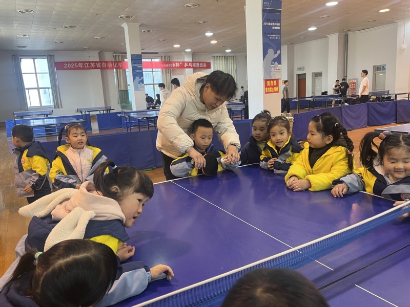 在二楼乒乓球馆,大哥哥手把手的教孩子们怎么握球拍,怎么发球,大家玩得不亦乐乎。羽毛球馆里,看着打球的人在场地里来回飞奔、跳跃,孩子们眼神异常专注,“哇!他们好厉害呀!”