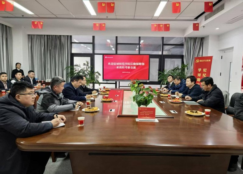 为进一步推进食堂餐饮服务的标准化、特色化建设,12月19日下午,后勤保障部部长孔德根、副部长朱荣率领食堂餐饮服务团队一行13人,赴盐城市京师实验学校进行调研。盐城经济技术开发区综合执法局党组副书记、副局长陆乔松到场指导并主持座谈会。