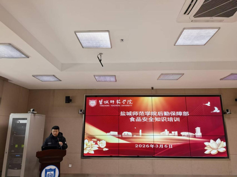 为持续筑牢食堂食品安全防线,有效提升学校食品安全管理工作水平,3月6日下午,后勤保障部组织开展2026年春学期食品安全知识培训。培训特邀盐城经济开发区综合行政执法局徐翔科长作专题辅导。饮食服务中心、采供服务中心近百名员工参加培训。培训活动由饮食服务中心主任张化凯主持。